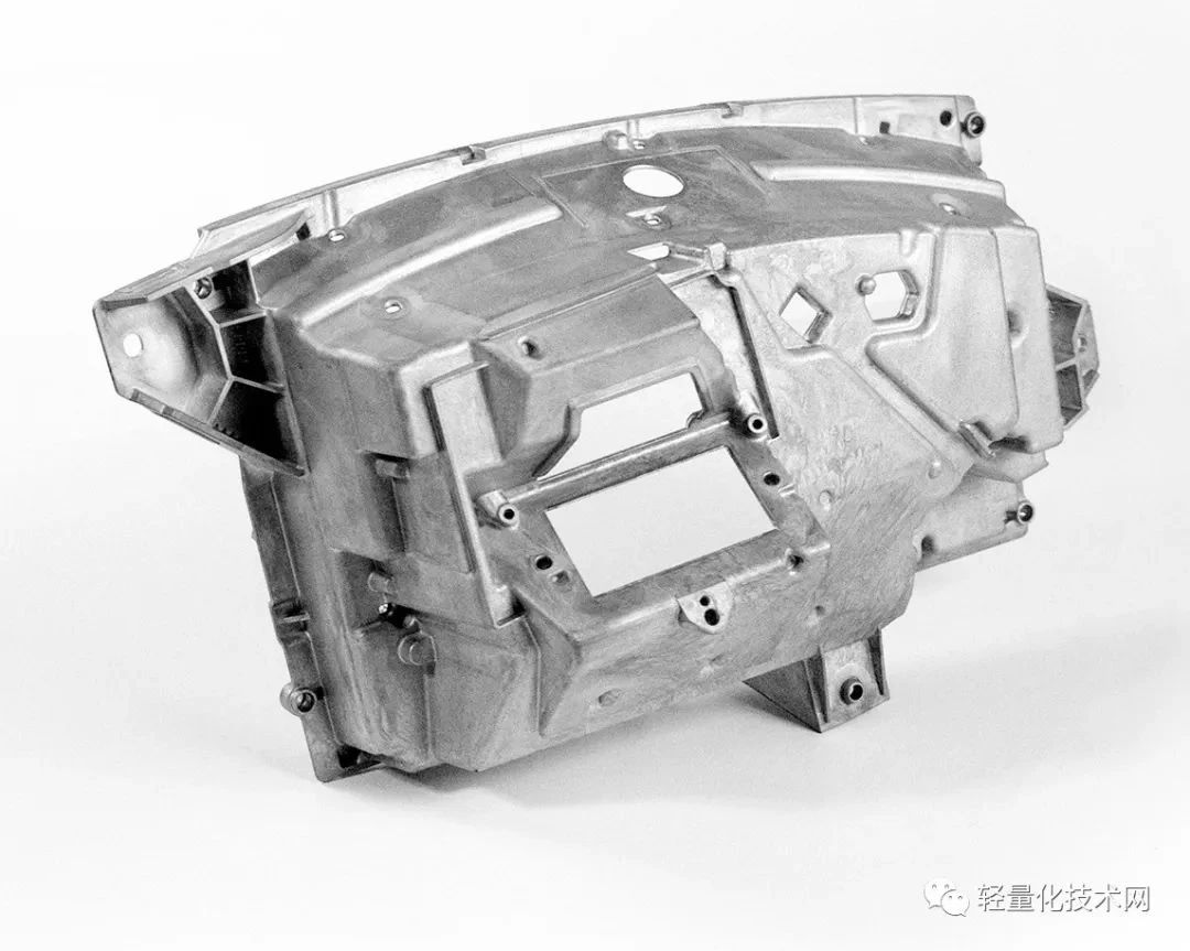 1、該部件體現(xiàn)了鎂壓鑄的主要優(yōu)勢。設(shè)計(jì)自由度高、結(jié)構(gòu)輕便、機(jī)械性能(尤其是剛性)極佳、可用一個部件替代多個單獨(dú)部件;