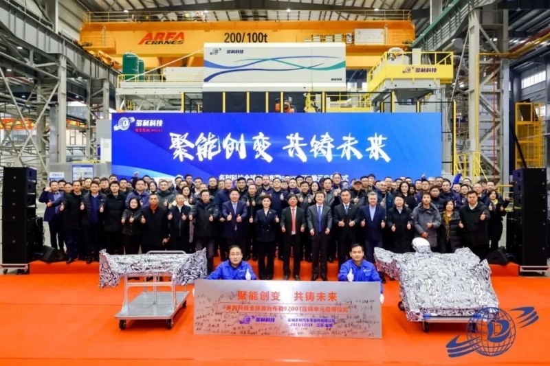 魏橋創業集團山東宏燦一體化壓鑄項目投產 據了解,山東宏燦大型一體化壓鑄項目總投資額17億元,占地面積310畝,主要建設壓鑄車間、精加工車間、實驗室等設施。項目引進多臺布勒3500T、4400T、6100T大型壓鑄機,以及德國史杰克西、丹麥斯托泰科、瑞典海克斯康等國際知名品牌生產和檢測設備。該項目采用自主研發的免熱處理材料,主要產品為減震塔、縱梁、后底板、電池殼、變速箱殼體等汽車一體化壓鑄鋁合金結構件。 山東魏橋創業集團總部位于山東省濱州市鄒平經濟開發區,是一家擁有12個生產基地,集紡織、染整、服裝、家紡、熱電等產業于一體的特大型企業。自2012年連續12年入選世界500強,“魏橋”品牌連續20年入選《中國500最具價值品牌》排行榜,連續多年入選世界品牌500強。 TOP 9 多利科技深入布局一體化壓鑄,被譽為壓鑄界最強“新人” 2023年12月18日下午,多利科技全球首臺布勒9200T壓鑄單元啟用儀式在多利鹽城工廠隆重舉行。這是繼6100T壓鑄單元之后,多利科技第二套超大型壓鑄單元正式投入生產。這也是布勒全球首臺量產的9200T壓鑄單元,后者于2023年3月18日在中國無錫下線。