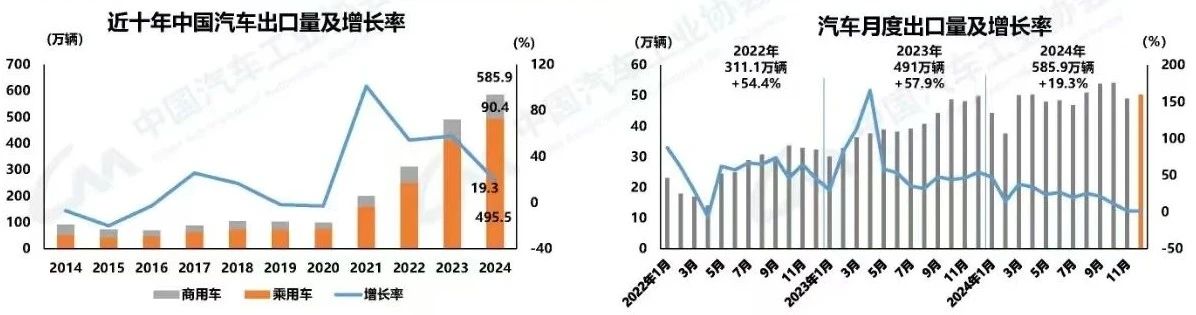 ![]() 中國汽車工業協會于昨日(1月13日 星期一)發布的最新數據顯示,我國2024年汽車產銷量均超過3100萬輛,再次創下歷史新高。 具體數據顯示,我國去年汽車產銷量分別達到了3128.2萬輛和3143.6萬輛,同比分別增長3.7%和4.5%。其中,新能源汽車的產銷量尤為亮眼,分別達到了1288.8萬輛和1286.6萬輛,同比分別增長高達34.4%和35.5%。 此外,數據還顯示我國汽車出口量達到了585.9萬輛,同比增長19.3%,進一步鞏固了中國作為世界第一大汽車出口國的地位。