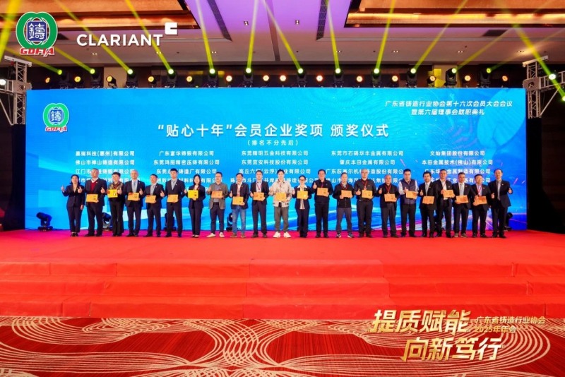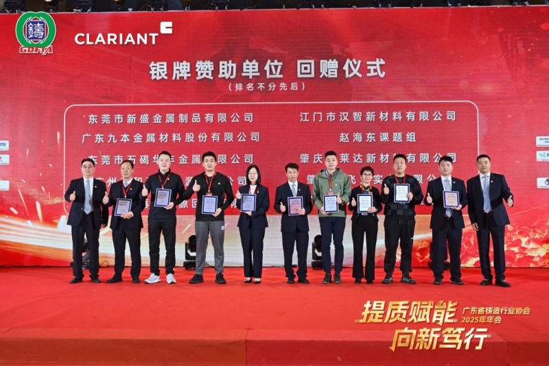 本次大會(huì)的成功舉辦,離不開眾多贊助商的慷慨解囊與鼎力支持。主辦方特別感謝本次春茗晚宴獨(dú)家冠名單位科萊恩化工科技(上海)有限公司。金牌贊助商廣東揚(yáng)山聯(lián)合精密制造股份有限公司、嘉瑞科技(惠州)有限公司、廣東雄新壓鑄有限公司、廣東金志利科技股份有限公司、廣東省鑄力鑄材科技有限公司、伊之密股份有限公司、佛山市南海區(qū)晉遠(yuǎn)達(dá)焦鐵有限公司、湖南鑫泉科技有限公司、廣東中天創(chuàng)展球鐵有限公司、宏豐金屬制品(惠州)有限公司、禹州市恒利來新材料股份有限公司、廣東肇慶動(dòng)力金屬股份有限公司。銀牌贊助商?hào)|莞市新盛金屬制品有限公司、廣東九本金屬材料股份有限公司、東莞市石碣華豐金屬有限公司、廣州三和再生資源有限公司、中山市潤興再生資源回收有限公司、江門市漢智新材料有限公司、趙海東課題組、肇慶美萊達(dá)新材料有限公司、肇慶市飛亞實(shí)業(yè)有限公司、廣州海購新材料有限公司。主辦方為他們頒發(fā)了紀(jì)念獎(jiǎng)牌。