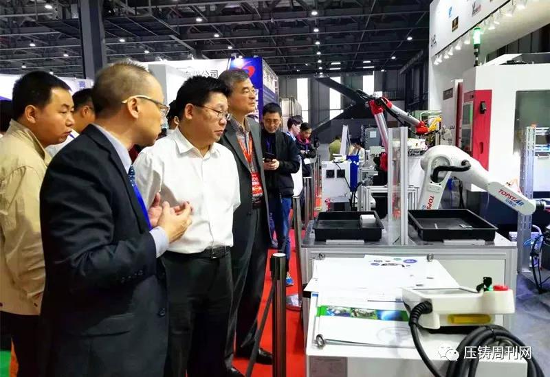 展會(huì)期間,多位東莞市委市政府領(lǐng)導(dǎo)蒞臨參觀指導(dǎo)。圖為東莞市委常委、副市長(zhǎng)張冠梓先生(前排左二)蒞臨現(xiàn)場(chǎng)觀看工業(yè)4.0智能生產(chǎn)線