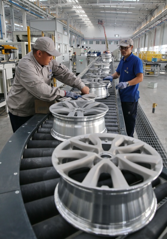 生產(chǎn)車(chē)間 據(jù)悉,中秦興龍年產(chǎn)高性能、輕量化鋁合金汽車(chē)車(chē)輪項(xiàng)目采用水冷工藝、熱進(jìn)爐工藝、特殊漆工藝等新型工藝,能滿足國(guó)內(nèi)外各種轎車(chē)、輕型車(chē)以及微型車(chē)等車(chē)型的配套需要。 |