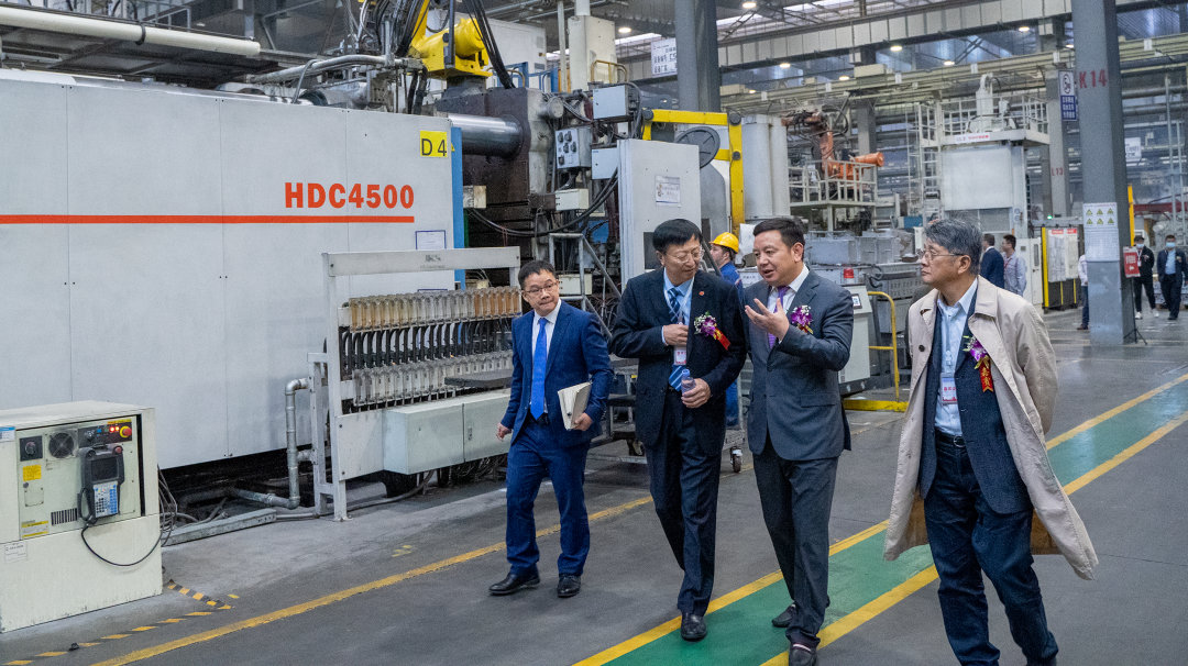 張立波會(huì)長(zhǎng)發(fā)表致辭 張立波代表中國(guó)鑄造協(xié)會(huì)對(duì)本次活動(dòng)表示祝賀,對(duì)兩家企業(yè)在各自領(lǐng)域取得的優(yōu)異成績(jī)表示贊賞。張立波指出,8800噸壓鑄機(jī)創(chuàng)造了世界之最,希望兩家企業(yè)以本次合作為新起點(diǎn),繼續(xù)開(kāi)發(fā)和應(yīng)用具有自主知識(shí)產(chǎn)權(quán)的優(yōu)秀智能裝備,建設(shè)具有國(guó)際領(lǐng)先水平的智能標(biāo)桿工廠(chǎng),切實(shí)擔(dān)當(dāng)起推動(dòng)我國(guó)壓鑄“創(chuàng)新、綠色、智能發(fā)展”的行業(yè)責(zé)任!