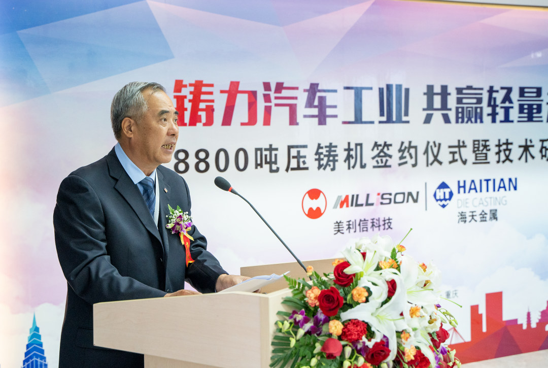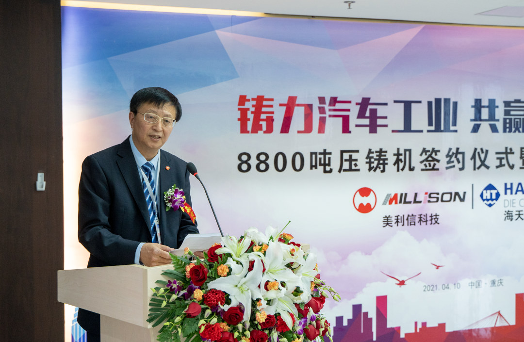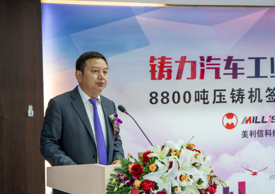 余亞軍總裁發(fā)表致辭 儀式上,余亞軍總裁表示:當(dāng)前,美利信科技聚焦“5G通信”和“新能源+智能網(wǎng)聯(lián)汽車(chē)”兩大前瞻領(lǐng)域,與全球優(yōu)質(zhì)客戶(hù)同步開(kāi)發(fā)新能源汽車(chē)零部件及大型結(jié)構(gòu)件的輕量化。海天金屬8800噸壓鑄機(jī)的引進(jìn),將徹底解決未來(lái)生產(chǎn)大型汽車(chē)結(jié)構(gòu)件的工藝瓶頸,實(shí)現(xiàn)全流程“中國(guó)智造”。美利信科技將繼續(xù)以振興民族工業(yè)為己任,與以海天為代表的國(guó)產(chǎn)優(yōu)秀裝備供應(yīng)商加深合作,共同推動(dòng)中國(guó)壓鑄產(chǎn)業(yè)的興旺發(fā)展,走向世界!