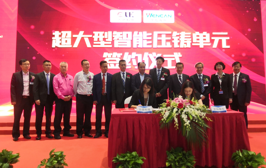 ![]() 壓鑄周刊(2021年5月26日 上海)今日中午,力勁集團與廣東文燦壓鑄股份有限公司(“文燦股份”)超大型壓鑄單元暨戰略合作儀式,在上海國家會展中心NH館舉行。文燦股份高軍民副總經理、易曼麗副總經理,力勁集團深圳領威科技有限公司潘玲玲總經理,分別就”超大型智能壓鑄單元簽約儀式”、“戰略合作簽約儀式”上代表各自企業簽字。