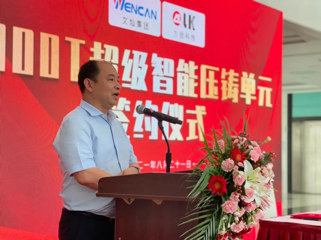 簽約儀式前,文燦集團(tuán)董事長兼總經(jīng)理唐杰雄,力勁集團(tuán)CEO劉卓銘分別致辭。唐杰雄先生表示:“繼今年5月文燦向力勁采購7套大型壓鑄單元之后,時(shí)隔不到三個(gè)月,雙方再度牽手,達(dá)成了9000T超級壓鑄機(jī)采購協(xié)議。新設(shè)備將于明年2月底交付,明年4月正式試產(chǎn)。文燦專注于高壓壓鑄,去年并購了法國百煉集團(tuán),擴(kuò)充了低壓、重力鑄造業(yè)務(wù),完善了鋁合金鑄造供應(yīng)鏈,樹立了文燦在鋁鑄造領(lǐng)域的全球影響力。”