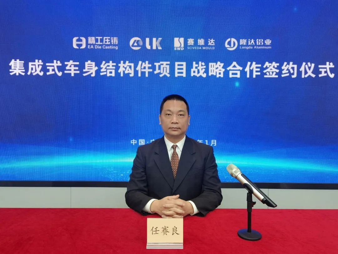 當(dāng)前,精工壓鑄已完成產(chǎn)品設(shè)計(jì)、整車性能仿真分析、模具方案設(shè)計(jì)驗(yàn)證工作,即將進(jìn)行項(xiàng)目落地。通過本次與業(yè)內(nèi)設(shè)備、模具、材料龍頭企業(yè)戰(zhàn)略合作,為項(xiàng)目順利實(shí)施提供有力保障。 力勁集團(tuán)CEO劉卓銘先生,寧波賽維達(dá)董事長任賽良先生,隆達(dá)鋁業(yè)總裁杜永立先生分別致辭。各位供應(yīng)商企業(yè)負(fù)責(zé)人均表明,通過本次戰(zhàn)略簽約將為精工壓鑄提供更加優(yōu)質(zhì)、高效的技術(shù)支持和服務(wù),保障項(xiàng)目順利投產(chǎn)、達(dá)產(chǎn)!