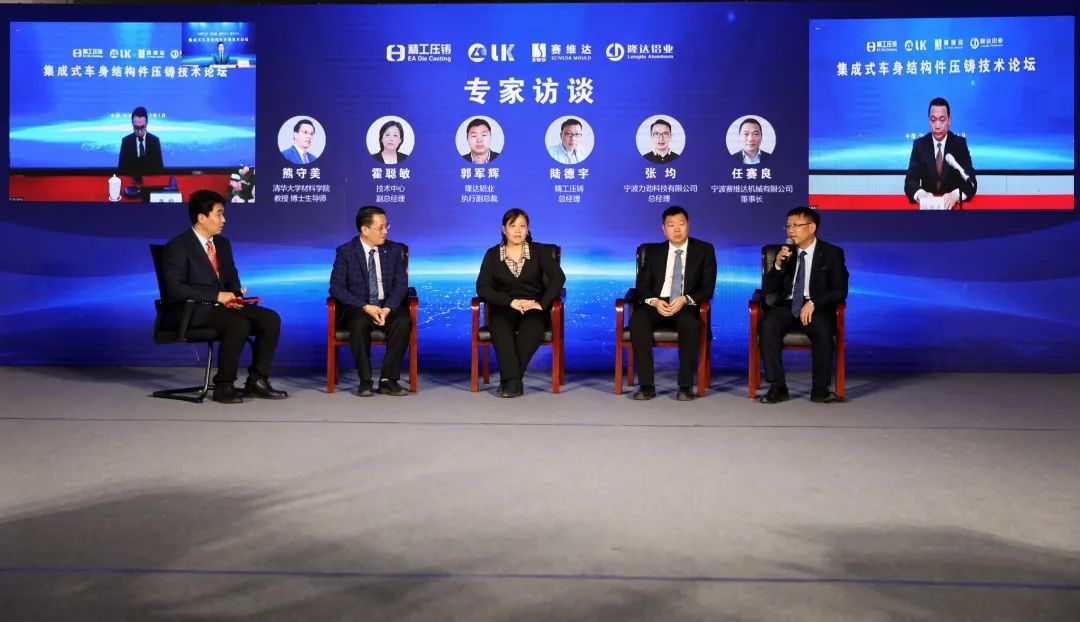 適創(chuàng)科技設(shè)計(jì)總監(jiān)薛鵬基發(fā)表主旨演講:仿真分析將在壓鑄智能開發(fā)、智慧制造領(lǐng)域提供強(qiáng)大技術(shù)支撐 論壇期間,主辦方特別組織了專家訪談環(huán)節(jié),清華大學(xué)熊守美教授,長城汽車技術(shù)中心副總經(jīng)理霍聰敏、精工壓鑄總經(jīng)理陸德宇、隆達(dá)鋁業(yè)執(zhí)行副總裁郭軍輝先生以及寧波力勁科技總經(jīng)理張均、寧波賽維達(dá)董事長任賽良參與了本次交流。