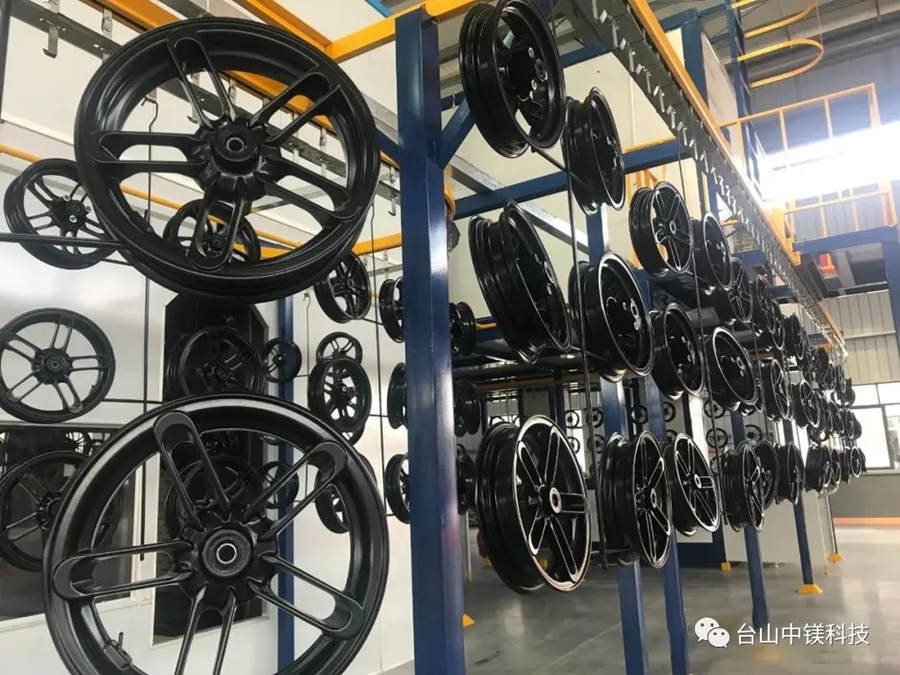 一線探訪 比鋼和鋁更輕的新材料 走進中鎂科技廠房,各生產線上自動化壓鑄機等設備有條不紊地運作,鎂合金材料經過壓鑄、成型、冷卻等流程后形成輪轂毛坯,再經過打磨、上色,制成成品。