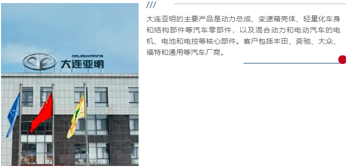 ![]() 面向汽車未來的智能鑄造 大連亞明與史杰克西建立值得信賴的合作伙伴關系 大連亞明汽車部件股份有限公司(以下簡稱“大連亞明”) 是中國領先的鋁合金高壓壓鑄產品供應商,為全球汽車行業和日本大品牌零部件公司提供產品。自 2008 年采用第一臺 Westomat 定量爐以來,大連亞明已經實現了許多生產方面的自動化,并調整了其工廠配置以適應新能源汽車零件的生產。大連亞明正著眼于生產更大的部件,以及整個大連工廠的IIoT 自動化改造,因此將其與史杰克西的合作視為發展的關鍵。
