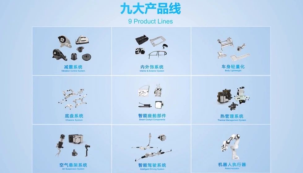 其中,減震器業務收入38.72億元,同比增長15.69%;內飾功能件業務收入54.63億元,同比增長52.68%;底盤系統業務收入44.45億元,同比增長69.40%;汽車電子業務收入1.92億元,同比增長4.92%;熱管理系統業務收入13.69億元,同比增長6.54%。 除汽車業務外,公司積極布局機器人產業。公司的運動執行器包括電機、電控及減速機構等部件,樣品已獲得客戶的認可,后續發展潛力巨大。