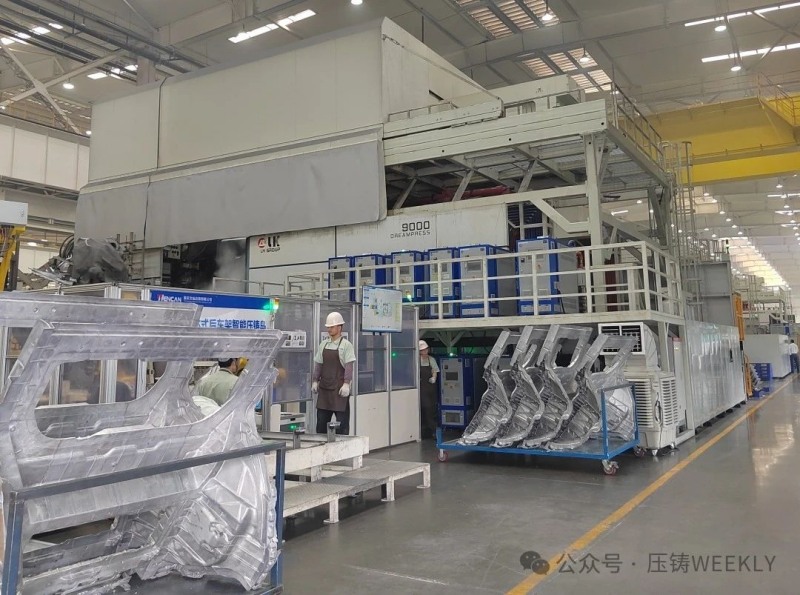 文燦集團董事長唐杰雄致辭 文燦集團在重慶擁有兩個已投產的壓鑄基地和一個在建的壓鑄基地,分別位于兩江新區、沙坪壩區和長壽區。其中,兩個已投產的壓鑄基地均設在賽力斯汽車的兩個超級工廠內部,采用創新的“廠中廠”合作模式,主要為賽力斯汽車提供大型一體化壓鑄件和“三電系統”關鍵零部件。 此次活動所在的文燦集團壓鑄基地,主要為賽力斯汽車M9提供一體化壓鑄前艙、后地板和左右一體化側圍等四大鑄件的生產。據了解,文燦集團為M9設計開發了10個車身結構件和一體化大鑄件,總計替代了超過280個零部件,焊接點減少1440多個,總計下降70%,充分體現了M9集成度高、性能強、輕量化顯著的優勢。