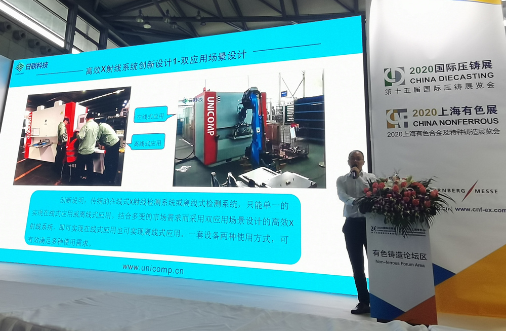 田洪俊先生在“創新技術日”作演講報告 高效X射線系統,斬獲壓鑄行業創新技術證書 日聯科技致力于為高端鑄造行業的離線/在線檢測提供先進的檢測技術,減少產品缺陷、降低誤判率,幫助企業進一步提升生產效率。基于市場需求和企業使命,其“高效X射線系統”,被行業專家評價為“2020壓鑄行業年度創新技術”,并獲得榮譽證書。同時,重慶日聯田洪俊先生在“壓鑄行業創新技術發布會”現場講解和介紹該高效X射線系統。 |