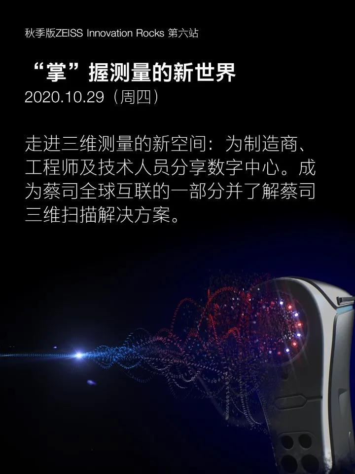 ![]() 10月20日-10月29日,全球新品發布會暨新品技術分享會。 2020年世界發生著巨大的變化,我們也在適應這些變化。今年春天,蔡司推出了ZEISS Innovation Rocks系列活動,這是我們的新嘗試,通過在線直播為您帶來蔡司最新產品和資訊?,F在準備好迎接第二輪的創新技術發布,ZEISS Innovation Rocks秋季版。 兩周,六場新品發布會,蔡司誠邀全球測量大咖們與我們的產品經理及應用專家一同,見證蔡司創新科技,共迎質量挑戰。 現在預約即有機會獲得以下禮品: