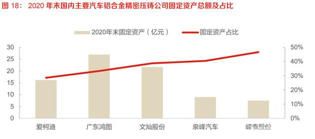 從資本支出及毛利率看,2017-2018 年泉峰汽車資本支出處于高位,較高的資本支出部分導致毛 利率處于低位,2018 年資本支出為 3.56 億元,泉峰汽車毛利率下降至 24.38%,同比下滑 0.42 個百分點,2018年后泉峰汽車毛利率上升系持續優化產品結構,公司獲得包括天津大陸 MER3軸 傳動電機殼、PSA 逆變器殼體、寶馬系列逆變器殼體等毛利率較高的新能源汽車零部件項目。根 據規劃,2020 年開始建設的馬鞍山汽車零部件智能制造項目、歐洲生產基地項目等有望于 2022 年逐步實現量產,產能利用率將提升,對毛利率不利影響減小。(報告來源:未來智庫) 4 行業競爭壁壘分析 國內壓鑄行業集中度較低,大多數企業規模較小。由于汽車行業的特殊性,汽車零部件精密壓鑄 行業存在資質和客戶認證壁壘、技術壁壘以及資金和規模壁壘等進入壁壘,新進入者將面臨更大的障礙。預計在短時期內,國內已進入各大整車廠商配套體系的大型零部件壓鑄公司仍將占據行 業主導地位。 (1)資質和客戶認證壁壘。汽車工業是專業化、精細化程度較高的行業,為滿足汽車在安全性、 舒適性等方面的嚴格要求,零部件企業在進入整車配套體系前需要通過一系列嚴格的審核和認證 體系,主要包括整車廠商認證和第三方體系認證兩類: 為了滿足汽車零部件的嚴格質量要求,國際組織、國家和地區汽車協會組織等建立了一系列的質 量體系認證標準,其中最重要的是國際汽車標準合作組織(IATF)制定的 IATF16949(原 ISO/TS16949)質量管理體系認證。IATF16949 對零部件供應商在設計研發、原材料管理、生產 能力、產品質量管理等方面提出嚴格的要求,現已基本成為國內外各大整車廠商、一級零部件供 應商配套體系的準入門檻之一。 在取得第三方體系認證的基礎上,大眾、通用等主流整車廠商通常會按照各自獨立的供應商評審 體系,對擬合作的零部件廠商的研發能力、加工工藝、批量生產能力、質量管控能力等進行嚴格 的審核,在此基礎上進行材料試驗、產品試驗、上車路試等質量認證,認證時間通常在 1 年以上。 嚴格、復雜、漫長的資質認證流程成為零部件廠商進入整車企業配套體系的重要壁壘。 在此背景下,一旦整車廠商與零部件公司合作關系建立,整車廠商通常不會輕易更換供應商,形 成較強的客戶粘性。目前國內主要壓鑄企業與各下游整車廠商已建立長期穩定的合作關系,進一 步提高行業進入門檻。 (2)技術壁壘。隨著汽車工業的發展,整車企業對于汽車零部件的性能、質量、可靠性等要求 逐漸提升,行業的技術壁壘呈現不斷提高的趨勢。具體至汽車零部件精密壓鑄行業,供應商在產 品結構與制造方案設計、模具設計開發與制造、材料開發與制備、壓鑄工藝技術等多個環節均需 要長期的技術積累,才能滿足整車企業和一級零部件供應商對產品的質量要求。現階段文燦股份、 愛柯迪等國內主要鋁合金精密壓鑄公司在生產制造的各項工藝流程中已形成多項核心工藝與技術, 進一步增強在行業內的競爭優勢。 另一方面,隨著新能源汽車的快速發展及新勢力車企的影響力提升,汽車車型開發周期呈現縮短 趨勢,要求汽車零部件廠商具備更強的同步開發能力和精細化管理能力。對于新進入、規模較小 的企業而言,其在經驗積累、人員團隊、管理機制等方面較難滿足現階段高速迭代的零部件開發 需求。 (3)資金和規模壁壘。汽車精密壓鑄是典型的資金密集型行業,壓鑄設備、熔煉設備、模具生 產設備、檢測設備等必要的生產制造設備需要高額的購置費用。在行業競爭愈發激烈的趨勢中, 為了保證產品的精密度、強度、可加工性等技術指標達到先進水平,國內企業往往需要購置更高端的加工和檢測設備,對企業的資金實力提出了較高的要求。2020 年國內主要汽車精密壓鑄公司 固定資產占總資產比例均處于較高水平,泉峰汽車、嶸泰股份等固定資產占比大于 40%,高固定 資產特征較為顯著。 與此同時,國內外的主要整車廠商對供應商的產能規模、供貨能力等提出了嚴格的要求,以保證 大規模訂單能夠按時、按質、按量交付,新進入者在短時間內難以達到相應的規模。此外,作為 高固定資產行業,汽車精密壓鑄需要較大的生產規模才能使得固定資產利用率提高,降低邊際生 產成本,實現規模效益。新進入者在短時間內難以實現規模化生產,導致單位成本相對較高,盈 利能力受限,對于新進入者也構成了較大的障礙。