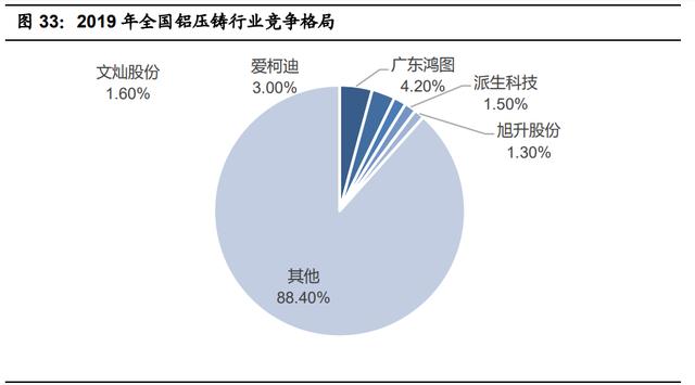 鋁壓鑄進入壁壘較高,國內鋁壓鑄企業均有自身優勢領域。鋁合金壓鑄行業屬于資 金與技術密集型行業,生產過程中的零件設計、模具制造、壓鑄、精密加工、工藝 優化等各環節均需要長期的技術積累,另外相關模具與壓鑄設備也需要大量資金投 入,市場進入壁壘高。廣東鴻圖主要做中大件包括動力總成系統、傳 動系統和新 能源汽車的結構件。鴻特精密的主要產品是應用于汽車發動機、變速箱及底盤制造 的鋁合金精密壓鑄件及其總成。愛柯迪的產品以中小件為主,覆蓋雨刷系統、轉向 系統、發動機系統、傳動系統等,主要客戶是一級供應商,變速箱和撥叉的市場份 額排名第一。 材料+方案+設備構成技術核心,自主零部件廠商具備先發優勢 材料:獨家鋁合金材料構成特斯拉一體壓鑄技術壁壘。早在 2015 年 12 月,特 斯拉就聘請了鋁合金專家查爾斯·柯伊曼,令其負責特斯拉的材料工程團隊。特 斯拉研發的鋁合金材料是獨家配方,具有強度高、導電性強的特點,因此穩定 性優異。由獨家合金材料壓鑄而成的后底板總成不需要再進行熱處理,可直接 進入下一工序,制造時間由傳統工藝的 1-2 小時縮減至 3-5 分鐘,極大的節省 了所需的生產時間,且能夠在廠內直接供貨。這一新型鋁合金材料是特斯拉的 獨家專利,保證了特斯拉在一體壓鑄應用上的技術壁壘。 方案:壓鑄方法專利有效促成大型部件落地。特斯拉申請專利:汽車車架的多 向車身一體成型鑄造機和相關鑄造方法。此方法獨創地將一套固定的模具放置 在中心,四套可以移動的模具放置在四個不同方向。可移動的模具通過液壓設 備分別與中心固定好的模具貼合,并共同形成一個封閉的空腔。熔融狀態的鋁 合金分別從四個移動模具上的澆筑口壓入模具空腔,鋁合金在空腔內流動、匯 合,最終鑄成大型的一體式壓鑄結構零件。