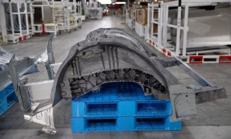 然后是3月、4月,特斯拉柏林工廠和得州工廠先后開業,鋪天蓋地的報道和一條無人機高難度穿越柏林工廠生產線拍攝的視頻讓“一體化壓鑄”再次被頻繁提起。 全世界汽車生產的四大工藝都是沖焊涂裝,第一步將鋼板沖壓成小零件,然后把小零件焊接成大部件乃至白車身。特斯拉一體鑄造是把沖壓改為壓鑄,前兩步合成一步,直接鑄造出大部件。 這不僅改變了沖焊涂裝的汽車制造四大工藝,更是從思維上對傳統造車方式的改造。 最先采用該技術的Model Y后車架原本由70個零件沖壓、焊接而成,一體化壓鑄把它變成了一個零件,制造時間從1-2小時縮短至45秒-2分鐘,制造過程減少了300臺機器人,同時縮短生產線,節省30%占地面積。人工方面,主流汽車工廠焊裝車間要配 200~300 名工人,一體式壓鑄車間只需要 20-30 名工人。特斯拉官方稱一體化壓鑄技術將給 Model Y節省約 20%制造成本。 也就是說,零部件的70合一有多方面的優勢,可以讓車身輕量化,節省成本,提高效率,縮短供應鏈,整車的制造時間和運輸時間縮短,減少人工和機器人,提升制造規模。