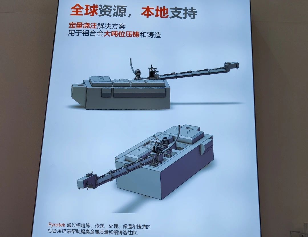 現場展示鋁熔煉到鑄造全流程3D模型 在展會現場,專業應用工程師為來訪客戶詳細講解Pyrotek 在鑄造及壓鑄熔鑄生產中從金屬熔煉、傳送、處理、保持和鑄造的組件和集成系統。據介紹,Pyrotek 集成熔融系統(IMS)能提供清潔、干燥和預加熱過熱的廢料,可以減少污染和氧化;通過循環泵和漩渦井組成的LOTUSS系統,可以降低熔爐溫度,大幅提高熔化效率和回收率,保持勻相熔池;經過溢流傳送系統(OTS)地將熔融的鋁從傳送輪抬起,可減少熔煉損耗,且安全快捷;Pyrotek 的轉運包和流槽系統,可以提高熔體質量,降低能源和人工成本。 Pyrotek 的預制成型耐火材料,高度耐用,輕質不粘鋁;耗材產品(如鋁液湯勺)可適用于多種應用的復雜設計;Pyrotek 旋轉除氣及熔劑噴射系統,可以有效減少鋁液中的氫和渣含量;Pyrotek 粉末和顆粒狀熔劑可以高效環保地去除溶體中的雜質,提高鋁液質量,且有助于延長耐火材料的壽命。同時,Pyrotek 為諸多應用提供創新型過濾系統,具有耐用性和抗化學性。采用Pyrotek 這一整套方案,不僅能夠提高金屬質量,金屬回收率高,還能降低能源成本,提高工藝效率和安全性。