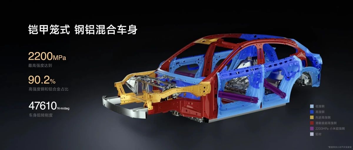 圖源:小米汽車 小米YU7采用了一體化壓鑄鋁三角梁和三段式大壓鑄后地板,這些設計顯著提高了車身強度和安全性。小米汽車超級工廠擁有自研的壓鑄合金材料和9100噸鎖模力的巨型壓鑄機,使得小米YU7的后地板尺寸比特斯拉Model Y大17%。這種一體化壓鑄技術減少了零件數量和焊點,提高了生產效率和車輛使用壽命,同時降低了維修成本。