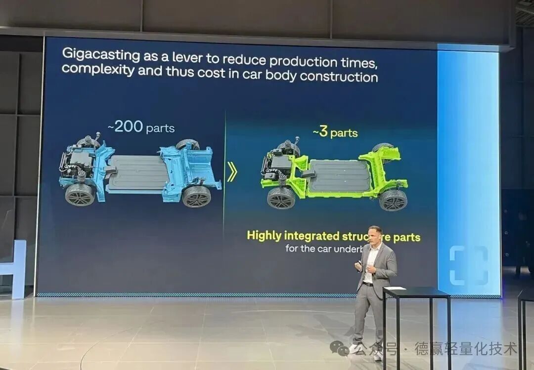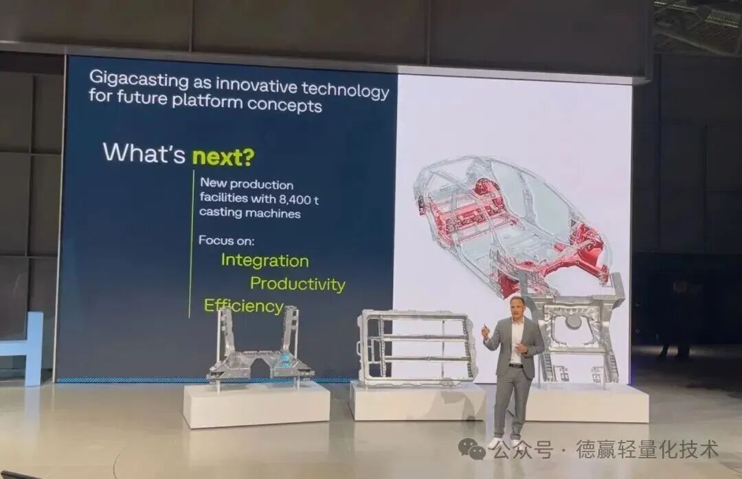 ![]() 日前(2025年9月9日至14日),在慕尼黑舉辦的IAA Mobility 2025車展上,大眾汽車在技術(shù)日發(fā)布會上宣布將為多款即將上市的入門級電動車采用一體化壓鑄技術(shù)。 初期戰(zhàn)略包括整合大型鋁鑄電池托盤,或更精確地說,托盤框架。該技術(shù)將率先應用于全新大眾ID. Polo、Cupra Raval、Škoda Epiq以及尚未公布量產(chǎn)版的VW ID. Cross。 馬克·亞當博士在會議中探討了大型鑄件的未來發(fā)展,強調(diào)其能縮短生產(chǎn)周期、降低復雜度并實現(xiàn)成本節(jié)約,同時透露可能規(guī)劃新建配備8400噸壓鑄機的工廠,重點提升集成化、生產(chǎn)力和效率。 演講還展望了大眾“一體化壓鑄”戰(zhàn)略的擴展前景,將其定位為高產(chǎn)量電動平臺的里程碑。 大眾尚未就前后底盤一體化壓鑄方案作出最終決定,但明確表示若未來選擇“特斯拉路線”,則需采用演講中提及的8400噸級等一體化壓鑄機。