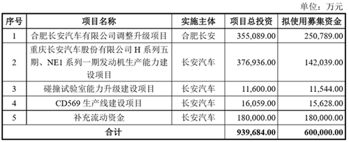 ![]() 4月27日,重慶長(zhǎng)安汽車股份有限公司發(fā)布公告,擬定增募資不超60億元,全部用于合肥長(zhǎng)安汽車有限公司調(diào)整升級(jí)項(xiàng)目、重慶長(zhǎng)安汽車股份有限公司H系列五期、NE1系列一期發(fā)動(dòng)機(jī)生產(chǎn)能力建設(shè)項(xiàng)目、碰撞試驗(yàn)室能力升級(jí)建設(shè)項(xiàng)目、CD569生產(chǎn)線建設(shè)項(xiàng)目以及補(bǔ)充流動(dòng)資金。 募資資金具體使用計(jì)劃方面安排,合肥長(zhǎng)安汽車調(diào)整升級(jí)項(xiàng)目擬使用約25.08億元,該項(xiàng)目投資總額為35.51億元,旨在進(jìn)一步提升公司新車型生產(chǎn)的效率和能力,保持和增強(qiáng)長(zhǎng)安汽車在SUV市場(chǎng)和華東區(qū)域的競(jìng)爭(zhēng)力。 重慶長(zhǎng)安H系列五期、NE1系列一期發(fā)動(dòng)機(jī)生產(chǎn)能力建設(shè)項(xiàng)目擬使用14.20億元,該項(xiàng)目投資總額為37.69億元,旨在形成新一代乘用車發(fā)動(dòng)機(jī)的大規(guī)模生產(chǎn)能力,以滿足大幅上升的市場(chǎng)需求。