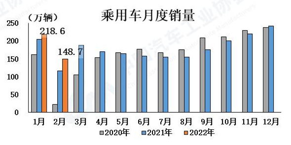 乘用車產(chǎn)銷同比較快增長(zhǎng) 2月,乘用車產(chǎn)銷分別完成153.4萬(wàn)輛和148.7萬(wàn)輛,環(huán)比分別下降26.1%和32%,同比分別增長(zhǎng)32%和27.8%。1-2月,乘用車產(chǎn)銷分別完成361.2萬(wàn)輛和367.4萬(wàn)輛,同比分別增長(zhǎng)17.6%和14.4%。
