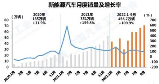 新能源汽車再創(chuàng)歷史新高 9月,新能源汽車產(chǎn)銷分別完成75.5萬輛和70.8萬輛,同比分別增長1.1倍和93.9%,市場占有率達(dá)到27.1%。1-9月,新能源汽車產(chǎn)銷分別完成471.7萬輛和456.7萬輛,同比分別增長1.2倍和1.1倍,市場占有率達(dá)到23.5%。
