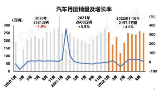 中汽協表示,10月,汽車產銷繼續保持增長態勢,累計同比增速延續平穩發展態勢。購置稅優惠等促消費政策持續發力,乘用車產銷同比繼續保持兩位數增長;商用車仍外干低位徘徊態勢;本月新能源汽車產銷和汽車出口均創歷史新高,繼續帶動我國汽車產銷穩定增長。 以下為產銷數據: 汽車產銷同比繼續保持增長勢頭 10月,汽車產銷分別完成259.9萬輛和250.5萬輛,環比分別下降2.7%和4%,同比分別增長11.1%和6.9%。1-10月,汽車產銷分別完成2224.2萬輛和2197.5萬輛,同比分別增長7.9%和4.6%。增速較1-9月分別擴大了0.5和0.3個百分點。