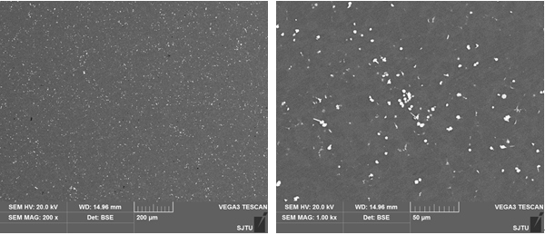 能譜選區分析結果 白色發亮物質為第二相,可見壓鑄后基體組織中第二相尺寸細小彌散,提高合金強度的同時,對合金塑性不造成較大影響。