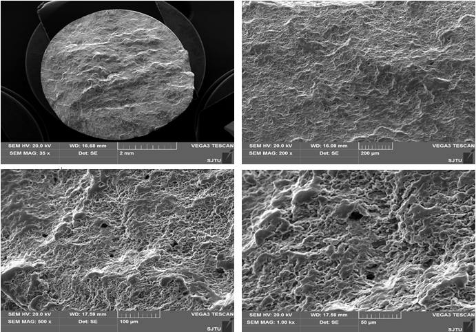 三、過程控制關鍵點 材料的含氫量高,會造成內部針孔缺陷,對客戶再次使用造成不利影響,因此,新金洋資源對合金的針孔度提出了更高的要求,并且在生產過程通過以下手段控制: 1、使用具有自主知識產權的高性能熔煉爐組,對合金進行充分預熱; 2、使用高效噴粉精煉劑對合金進行嚴格精煉; 3、使用自主研發的鋁液凈化裝備對合金進行惰性氣體精煉,在惰性氣體和熔劑的雙重作用下,將鋁液中的氧化物雜質去除掉; 4、使用在線除氣,更有效的除去液體中的雜質和雜氣,提升了鋁液的潔凈度。 四、合金顯微組織形貌 1、壓鑄試樣斷口顯微相貌: