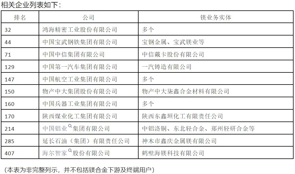 ![]() 美利信啟動“通信結構件壓鑄及機加車間技術改造項目” 近日,重慶市巴南區經信委發布消息,重慶美利信科技股份有限公司已在天明工業園天安路1號備案了“基于5G通信結構件數字化壓鑄車間、機加車間技術改造項目”。該項目旨在通過淘汰老舊設備并引入先進的生產設備和試驗檢測設備來提升其生產效能。計劃采購包括3臺套1600T、3500T、4500T智能化壓鑄島,10臺全自動加工中心,以及20條壓鑄生產線的雙化改造,以加速實現生產過程的高端化、綠色化和智能化升級。 有多少家世界500強企業進入鎂產業? 來自尚鎂網的消息,《財富》公布最新世界500強排行榜。今年,加上中國臺灣地區企業,中國共有133家公司上榜,比去年減少9家。尚鎂網通過榜單查詢,有11家上榜的中國公司涉及鎂及鎂合金加工制造業務。近年來大型企業不同程度的加入,給中國鎂產業鏈帶來了很多積極的變化,有助于鎂生產加工及應用水平的提高和鎂市場的發展。