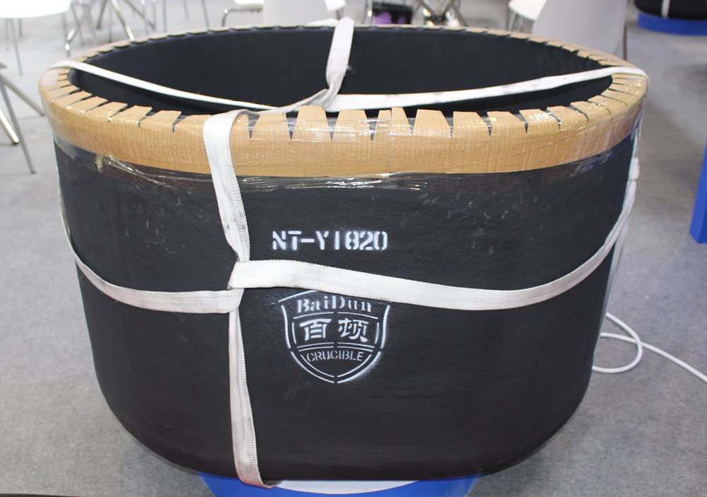 青島百頓3.5T鋁保溫坩堝 青島百頓銷售總經理孫建先生表示,3.5T石墨碳化硅坩堝,彰顯了青島百頓強大的研發和生產能力。近年來,越來越多的超大型壓鑄島生產線投用,行業對坩堝的需求也朝向大型化發展,青島百頓審時度勢,根據用戶需求,推出該行業最大的坩堝產品。 據了解,青島百頓此次展示豐富多樣的坩堝產品,除了3.5T鋁保溫坩堝外,還包括:Z2700帶嘴熔化坩堝、Y1560橢圓形坩堝、HL5000熔解保溫坩堝、Y1820橢圓形坩堝、B1550普通坩堝、B1300普通坩堝、NT1450感應爐坩堝等眾多坩堝產品,滿足不同客戶多樣化的需求。