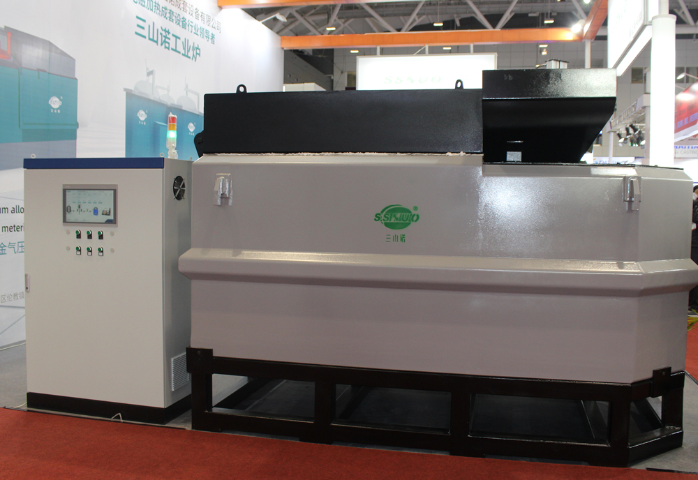 三山諾參展團隊,左四為公司總經(jīng)理黃炎培先生 在“2019國際(深圳)鑄業(yè)展”上,佛山市順德區(qū)三山諾成套設(shè)備有限公司攜最新研發(fā)的鋁合金氣壓定量爐“亮相”,展示其在壓鑄鋁合金熔煉及配套的成套設(shè)備的創(chuàng)新技術(shù)與成果。 據(jù)了解,鋁合金氣壓定量爐是在原浸入式保溫爐基礎(chǔ)上升級優(yōu)化的產(chǎn)品。其具有保溫定量功能,采用電磁感應(yīng)加熱,加熱快,料溫可控制在±1℃,;采用的氣壓系統(tǒng)定量,定量更精準,解決壓射過程中帶來的壓力不均,導(dǎo)致產(chǎn)品不穩(wěn)定現(xiàn)象發(fā)生;定量過程快,生產(chǎn)效率高,能有效降低能耗,相比傳統(tǒng)產(chǎn)品降低50%;采用上開蓋,密封性好,減少氧化渣產(chǎn)生,能給鑄造機提高非常潔凈的金屬液,從而提升鑄件品質(zhì)。