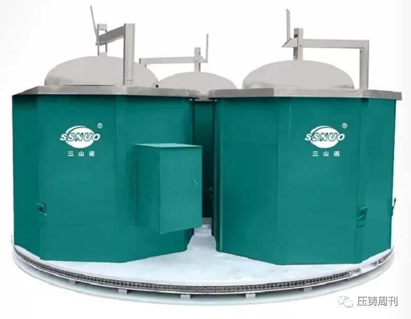 三山諾電磁感應(yīng)鋁合金集中熔化爐組 另外,三山諾公司還開發(fā)了蓄熱式鋁合金燃氣集中熔化爐、蓄熱式鋁合金機邊熔化爐、鋅鋁合金自動配湯線、除氣機、鋁合金運包等燃氣方面的熔爐和配套設(shè)備。產(chǎn)品種類齊全,可滿足有色鑄造企業(yè)全面的熔鑄需求。