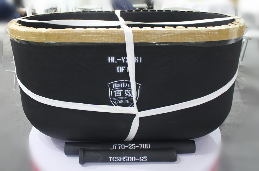 第三款是熔化保溫雙工位橢圓形坩堝,橢圓形坩堝是由百頓提出并最早研制的創(chuàng)新性產(chǎn)品,因為實用性強,很快流行起來,目前已經(jīng)從中國推廣到亞洲多個國家。它可用于燃氣爐、電磁爐、電阻爐等多種爐型,熔化保溫雙工位互不影響,支持自動舀湯。中間加擋渣板,可有效去除鋁渣,保證保溫室鋁液質量。第四款是鋅合金熔化蒸發(fā)坩堝,其特點是導熱快、成品率高。第五款是帶測溫孔的熔化保溫坩堝,讓測溫更加方便,并保證了金屬液溫度的準確性。
