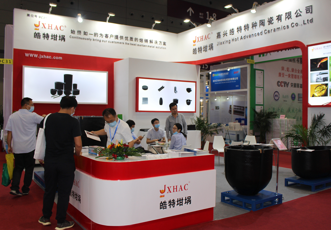嘉興皓特公司參展團隊 2020年11月27日,為期四天的2020第十屆國際(深圳)鑄業展,在深圳國際會展中心(寶安新館)成功落下帷幕。行業知名石墨碳化硅坩堝生產商--嘉興皓特特種陶瓷有限公司(下稱“嘉興皓特”)攜多款石墨碳化硅制品“亮相”,現場展示了包括兩款黏土石墨碳化硅坩堝、一款樹脂石墨碳化硅坩堝以及石墨碳化硅耗材產品。 據介紹,嘉興皓特生產的坩堝產品,采用高純度的石墨和碳化硅為原料,采用先進的冷等靜壓工藝制造,具有很高的機械強度和抗氧化性。經過多年的研發生產,已研發出了多個系列的高品質坩堝,包括HU型系列、HSN型系列、HT型系列、HA型系列等等,主要應用于重力鑄造、低壓鑄造、鋁合金熔煉等領域。