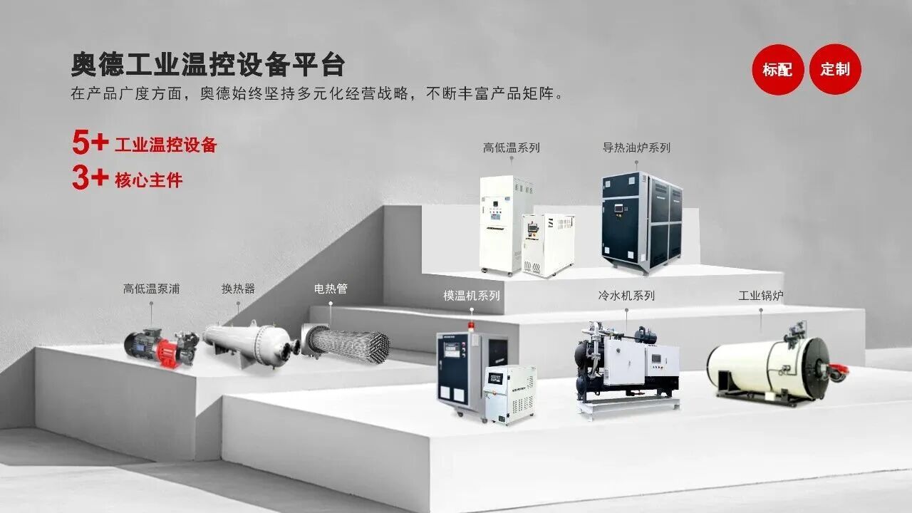 作為國內(nèi)專注于精密冷熱溫度控制設(shè)備研發(fā)生產(chǎn)與溫度系統(tǒng)解決方案提供的企業(yè),奧德始終以技術(shù)為核心、以需求為導(dǎo)向。公司產(chǎn)品矩陣豐富多元,全面覆蓋模溫機(jī)系列、冷水機(jī)系列、高低溫系列、TCU 系列、鍋爐系列、泵浦系列、換熱器系列、電加熱系列,可充分滿足不同客戶的精準(zhǔn)定制化需求。