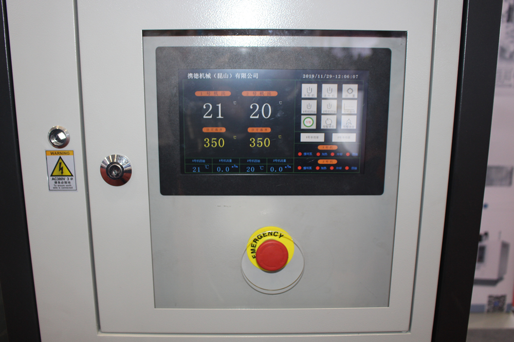 控制箱更直觀簡(jiǎn)便的大屏幕操作系統(tǒng) 另外,其新一代流道設(shè)計(jì),采用德國(guó)Speck無(wú)軸封磁力泵,杜絕泄露,坐高溫度350℃;泵浦前置,網(wǎng)罩堵塞更易察覺(jué),降低電機(jī)壽命短問(wèn)題;電控箱防水防塵導(dǎo)流設(shè)計(jì),電氣件壽命更長(zhǎng);待機(jī)、運(yùn)行、報(bào)警三色LED報(bào)警大燈,及時(shí)提醒;一鍵關(guān)機(jī)自動(dòng)冷卻功能,一鍵自動(dòng)回油功能;雙開(kāi)門設(shè)計(jì),高低壓隔離,防止數(shù)據(jù)誤調(diào);機(jī)器尺寸更小,減少占地空間。 值得一提的是,順應(yīng)“工業(yè)4.0”大潮,昆山攜德還結(jié)合溫控設(shè)備開(kāi)發(fā)出溫控管理系統(tǒng),實(shí)現(xiàn)智能物聯(lián),與壓鑄機(jī)信號(hào)對(duì)接,智能終端遠(yuǎn)程操控,助推企業(yè)用戶自動(dòng)化、智能化、數(shù)字化管理。 |