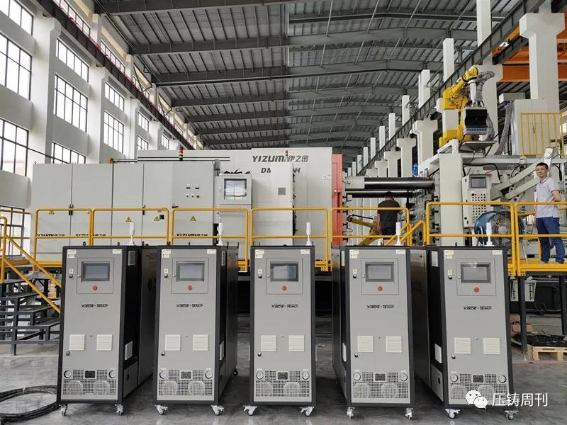 ![]() 日前,“2020年國際(深圳)鑄業(yè)展”在深圳國際會展中心(新館)閉幕。攜德機械(昆山)有限公司,為海天金屬現(xiàn)場展示的壓鑄島,配套提供模具溫度控制解決方案,展示了其經(jīng)優(yōu)化升級的壓鑄專用模溫機。 昆山攜德總經(jīng)理周鋒先生表示:“攜德模溫機廣泛應用于壓鑄、塑膠、醫(yī)藥、化工等行業(yè)和領域,在壓鑄行業(yè),我們?yōu)閴鸿T島及其自動化生產線,提供整體溫控解決方案,包括模溫機、水冷機及其組合產品。我們的模溫設備,已配套了大量的壓鑄單元及壓鑄項目。”