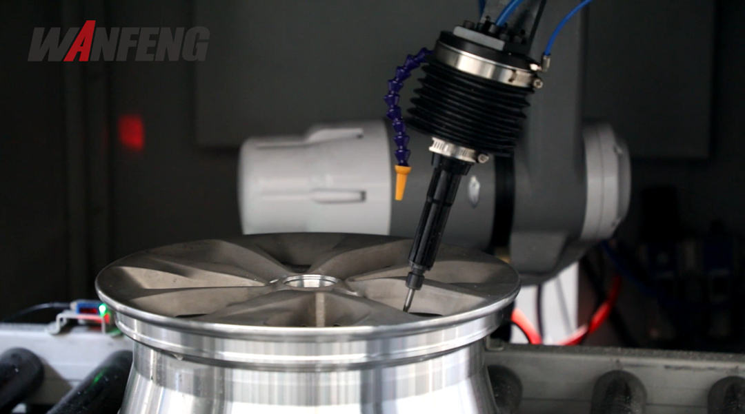 設(shè)備適用于副車(chē)架、電池包等大型薄壁件的鑄造成型,助力實(shí)現(xiàn)汽車(chē)零部件的輕量化。設(shè)備采用高速節(jié)能液壓控制系統(tǒng),擁有模具合攏檢測(cè)技術(shù)和抽負(fù)壓控制技術(shù),掌握成熟的冷卻、充型工藝,設(shè)備運(yùn)行精準(zhǔn)控制。并采用的公司自主研發(fā)的管理系統(tǒng),具有自動(dòng)識(shí)別、故障判定提醒等功能,實(shí)現(xiàn)簡(jiǎn)易操作,奠定智能鑄造基礎(chǔ)。 鋁輪轂機(jī)器人去毛刺生產(chǎn)線