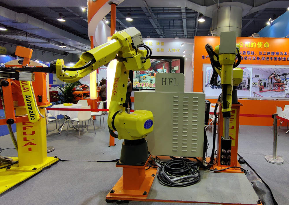東莞合富萊此次展示了多款伺服節能壓鑄機械手,包括五連桿式高速給湯機(HFLLD-2#)、連桿式單伺服沃鈴噴霧機(HFLRADMW-2#)、連桿式伺服取出機(HFLEADM-2#),以及噴霧、取件機器人壓鑄島(HFLYZD)系列等全方位滿足用戶需求。