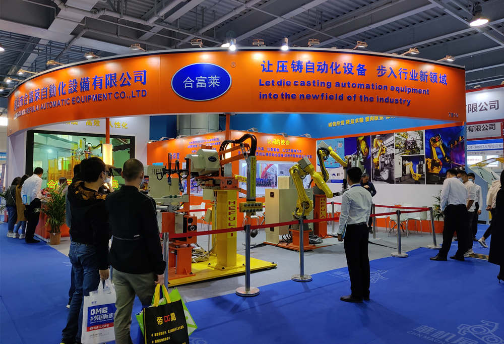 ![]() 2021年12月9日-13日,為期四天的“2021 DME東莞壓鑄展”在東莞厚街廣東現代國際會展中心勝利舉辦。得益于國家在疫情防控方面的卓越表現,中國經濟強勁復蘇,加之外貿需求的爆發式增長,在國內、國際雙循環帶動下,制造業一片欣欣向榮。壓鑄行業發展勢頭同樣迅猛,激發了產業鏈上下游企業、專業觀眾參展參會的熱情。 東莞市合富萊自動化設備有限公司(“東莞合富萊”)系行業領先的壓鑄自動化設備及生產解決方案提供商,為客戶提供鋅、鋁合金壓鑄機械手(給湯機、噴霧機、取件機)和機器人壓鑄島解決方案。東莞合富萊今年為第二次“亮相”DME東莞壓鑄展,落座于7號館7B10展位。近百平米的碩大展臺,展示多套技術先進的壓鑄自動化設備,以及噴霧、取件機器人壓鑄島。
