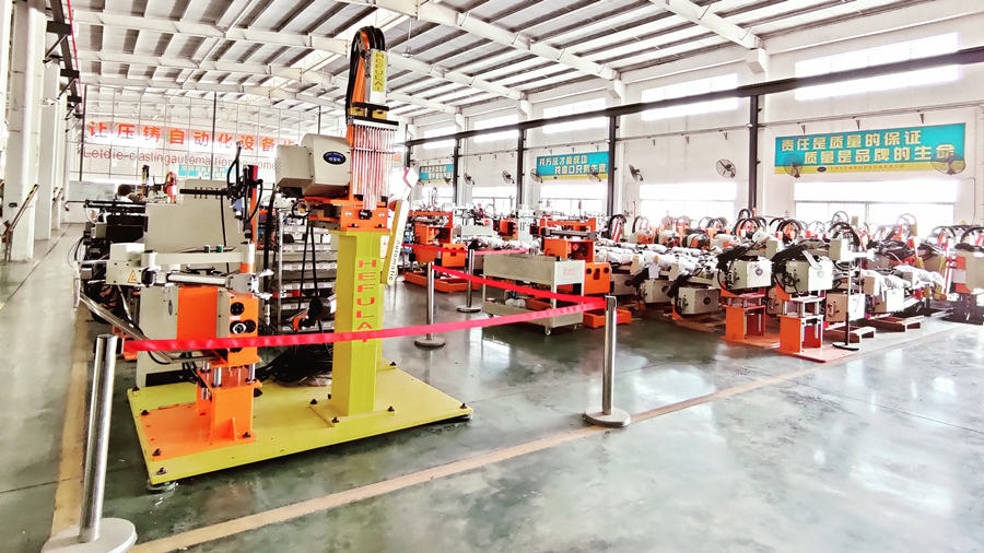 合富萊車間參觀 據(jù)了解,友盟鑫科技公司于2010年在深圳成立,專業(yè)從事各種鎂合金壓鑄、鋁合金零部件及配套產(chǎn)品的研發(fā)與制造。2015年,公司因發(fā)展需求并引進(jìn)戰(zhàn)略投資,將生產(chǎn)基地由深圳遷至東莞。友盟鑫公司鎂、鋁合金壓鑄零部件主要應(yīng)用于LED顯示框架、通訊、醫(yī)療、機(jī)器設(shè)備、汽車、路燈、家用電器類等行業(yè)和領(lǐng)域。 目前,友盟鑫科技東莞生產(chǎn)基地共有五棟廠房,占地面積為20000平方米,使用面積為25000平方米,設(shè)有壓鑄(現(xiàn)有500-2000T不同型號噸位的壓鑄機(jī))、CNC、噴粉、機(jī)加、組裝等生產(chǎn)車間,形成了從原料采購到成品組裝的完整生產(chǎn)供應(yīng)鏈,年產(chǎn)各種零部件達(dá)300萬件。 東莞市合富萊自動化設(shè)備有限公司前身輝榮自動化設(shè)備廠,始創(chuàng)于2006年,系行業(yè)技術(shù)領(lǐng)先的壓鑄自動化及周邊設(shè)備制造商。公司現(xiàn)有壓鑄機(jī)械手自動化設(shè)備、機(jī)器人壓鑄島兩大事業(yè)部,主要產(chǎn)品有機(jī)器人壓鑄島、自動給湯機(jī)、自動噴霧機(jī)、自動冷室取出機(jī)、自動熱室噴霧取出機(jī)、自動配比混合機(jī)、自動冷卻式鏈板輸送帶、自動顆粒機(jī)、油壓機(jī)等。公司坐落于廣東省東莞市企石鎮(zhèn)湖濱北路666號,擁有8000平方米的生產(chǎn)廠房,多年來積累超過1000家客戶應(yīng)用案例。