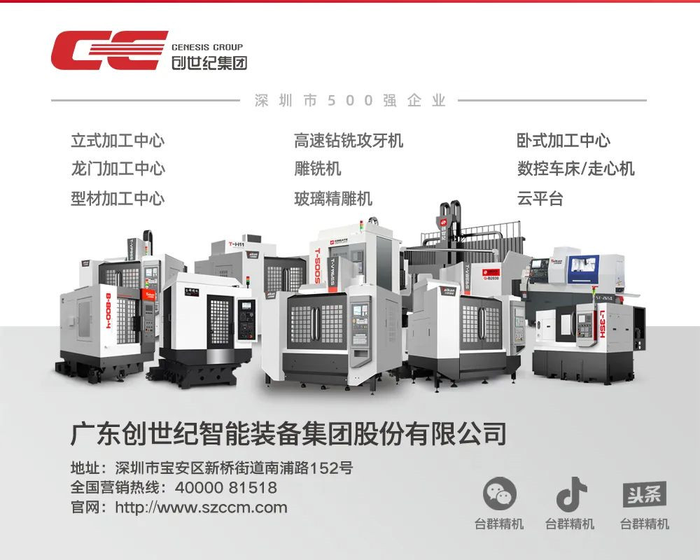 臺群T-V850M重切型立加加工視頻 廣東創世紀智能裝備集團股份有限公司(簡稱:創世紀集團;股票代碼:300083),是一家集智能裝備的研發、生產、銷售、服務于一體的企業集團。公司總部位于深圳市,擁有東莞、蘇州、宜賓、湖州四個現代化生產基地,廠房面積達45萬余平方米,員工達3000多人。創世紀旗下臺群精機品牌,在市場上有著非常高的銷量,品牌知名度和美譽度廣受市場和客戶贊譽。 打造核心優勢,提升競爭力 創世紀集團的數控機床產品品種齊全,主要涵蓋金屬切削機床、非金屬切削機床領域,涵括立式加工中心、型材加工中心、龍門加工中心、高速鉆銑加工中心、精雕機、走心機、臥式加工中心、五軸加工中心、門式立加、數控車床等。經過多年發展,公司能夠為客戶提供整套機加工解決方案,是國內同類型企業中技術寬度最廣、產品寬度最全的企業之一,核心優勢和競爭力不容小覷。 1、針對3C領域的高速鉆銑中心打破國外壟斷 2008年蘋果推出第一臺觸摸屏的iPhone手機進入人們的生活,智能手機開始登上歷史的舞臺,創世紀集團以敏銳的市場嗅覺提早發現了3C產業的良好前景,在智能手機產業發展早期就進行了大量研發與技術儲備工作。這使得高速鉆銑加工中心快速得到應用,目前累計銷售已超過80000臺,替代日本等進口機床,打破了國外企業對我國市場的壟斷,大大降低了手機制造企業的成本。為了鞏固在這一領域的優勢,創世紀集團在2021上半年又推出了創世紀S/SE系列通用鉆攻機,來滿足除3C以外領域的加工需求,有更高性能和加工精度的新一代臺群鉆攻機,目前也正在緊鑼密鼓的測試之中,以應對3C行業新材料、新工藝時代的潮流。