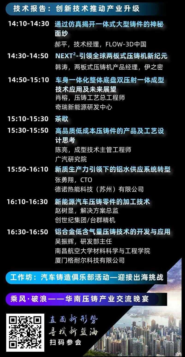 (1)壓鑄廠、汽車及汽車零部件(應(yīng)用終端)企業(yè)的代表,限時免費(2024年11月1日前報名),免費項目包含一天半聽會、會議餐飲、會議資料,不含交通住宿費。 掃描下方二維碼報名參會