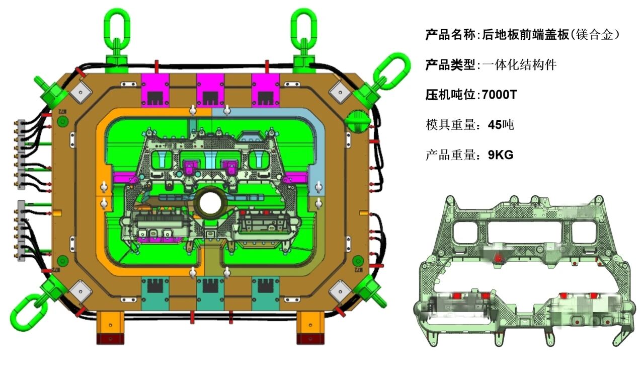 7000噸大型鎂合金壓鑄模具 2024年,搏潤模具與重慶大學、寶武金屬、海天智勝金屬合作,成功開發(fā)全球首款鎂合金半固態(tài)注射成型車輪模具,開創(chuàng)行業(yè)先例。此后,公司又陸續(xù)開發(fā)了CCB支架半固態(tài)注射成型壓鑄模具、新能源減速器殼體高壓壓鑄模具;目前正在開發(fā)的7000噸雙壓射半固態(tài)成型后尾內(nèi)門板模具,更是行業(yè)首次使用鎂合金半固態(tài)注射成型工藝制造的超大型鑄件。隨著高壓壓鑄和半固態(tài)注射成型工藝的成熟,鎂合金的應(yīng)用將得到快速推廣。