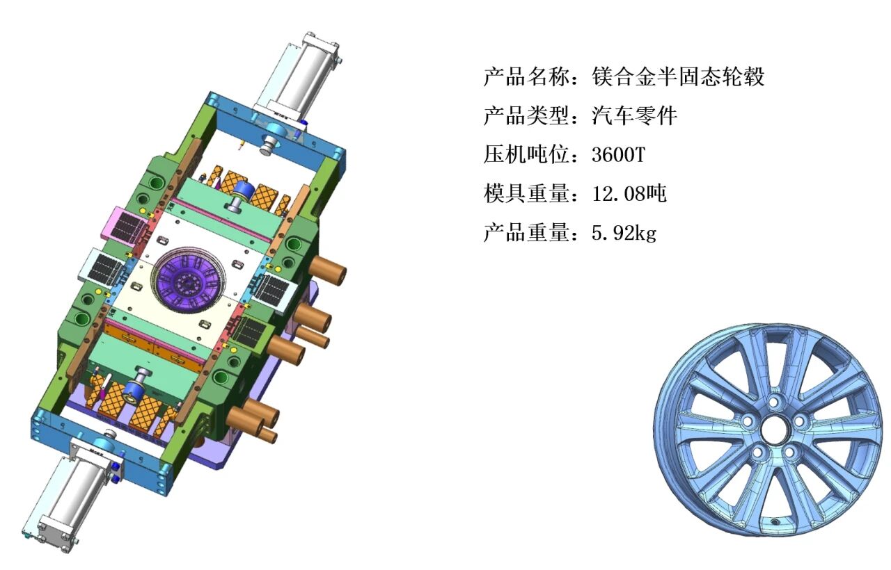 鎂合金半固態(tài)注射成型車輪模具 協(xié)同合作,攻克技術(shù)難題 在鎂合金半固態(tài)注射成型模具研發(fā)過程中,搏潤模具與合作伙伴攜手攻克了諸多技術(shù)難題。以往,這種成型工藝多用于計算機、消費電子類零部件,鑄件尺寸較小,成型難度低,對于流動距離較長的汽車鑄件,缺乏可參考資料,且大多模流軟件未涉足該領(lǐng)域。 以模具溫控設(shè)計為例,可選擇的冷卻介質(zhì)有限,針對局部熱量集中的部位,若熱量不能及時帶走,可能導(dǎo)致鑄件出現(xiàn)熱裂紋等鑄造缺陷。設(shè)計團隊經(jīng)過多次反復(fù)討論和模具溫控方案模擬分析迭代,最終采用梯度冷卻方案,有效解決了這一難題。