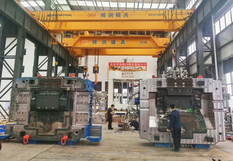超大型壓鑄模具制造車間 隨著新能源汽車市場的發(fā)展,壓鑄件呈現(xiàn)“高度集成化”趨勢,對模具設(shè)計和制造提出了更高要求。搏潤模具持續(xù)強化研發(fā)投入與硬件升級,打造了一支技術(shù)實力過硬、具有創(chuàng)新創(chuàng)造能力的團隊。公司持續(xù)在研發(fā)上投入資金,在人才引進、軟硬件投入以及提升模流分析算力等方面不斷發(fā)力,提升設(shè)計能力。 目前,搏潤模具已具備各類大型鑄件的仿真分析、設(shè)計、模具制造能力。為適應(yīng)市場對大型一體化壓鑄模具的需求,公司于2022年投入第二工廠,配備200噸行車、1200噸超大型合模機、大型五軸龍門加工中心和龍門三坐標等硬核裝備,具備制造16000噸及以內(nèi)大型精密壓鑄模具的能力。