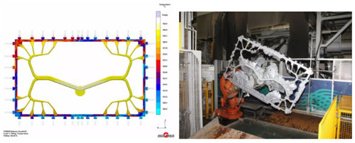 左:最終澆注系統(tǒng)設(shè)計(jì):填充后的溫度分布;右:廢品 Axel Schmidt:“采用MAGMASOFT®,我們從一開始就按照時(shí)間和成本的嚴(yán)格要求,成功生產(chǎn)出此框架產(chǎn)品。生產(chǎn)中不需要進(jìn)行任何工藝變更。今天,盡管壓鑄金屬液重量為24公斤,但是獲得部件重量僅為6.3公斤,充型時(shí)間僅為40毫秒,我們生產(chǎn)出的框架沒有大的變形。此項(xiàng)目不僅取得經(jīng)濟(jì)上的成功,而且是DGS革新能力的最新證明。” 同時(shí),DGS正在大量開發(fā)客戶所需的新的壓鑄件。DGS團(tuán)隊(duì)利用MAGMASOFT®進(jìn)行虛擬試驗(yàn)和探索自動(dòng)優(yōu)化的新的可能性,MAGMASOFT®對找出穩(wěn)健的工藝條件和對虛擬試驗(yàn)設(shè)計(jì)的評估提供積極的幫助,成為他們基于經(jīng)驗(yàn)工作的很好補(bǔ)充。DGS將繼續(xù)采用MAGMASOFT®來發(fā)掘更多時(shí)間和成本方面的潛力。 公司信息 DGS Druckguss Systeme AG是一家鋁、鎂合金壓鑄件的全球性輕合金開發(fā)商和制造商,其在瑞士St. Gallen、捷克共和國Liberec和中國南沙的工廠的雇員總數(shù)達(dá)900多人。自1950年創(chuàng)建以來,公司通過其自身技術(shù)和制造實(shí)力和毫不妥協(xié)的可靠性,確立其在客戶價(jià)值鏈中最具權(quán)威的系統(tǒng)供應(yīng)商的地位(這些客戶主要在汽車行業(yè))。DGS通過了 ISO TS 16949、 ISO 14001和OHSAS 18001認(rèn)證。除了其制造能力外,DGS是一家服務(wù)于其客戶的重要開發(fā)伙伴,專門致力于材料和工藝開發(fā)。 |