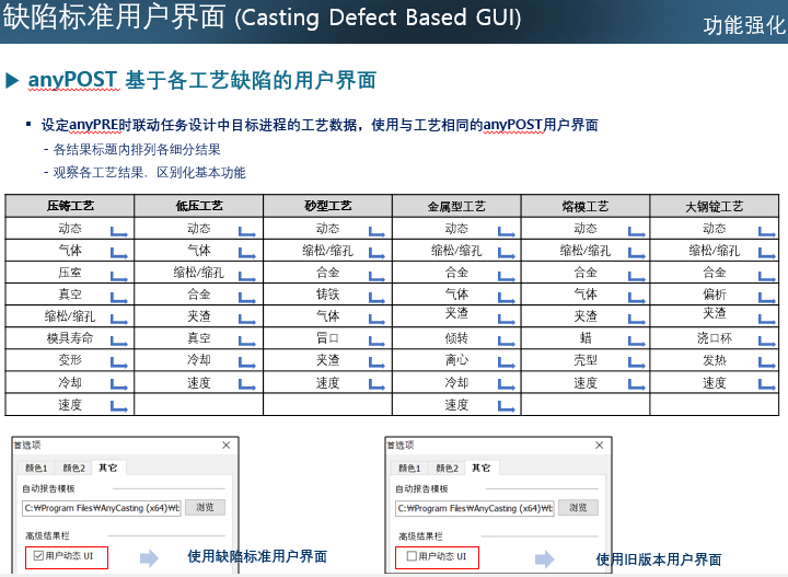 ![]() 國際知名鑄造模擬分析軟件提供商AnyCasting,即將推出其最新版本的軟件產(chǎn)品--AnyCasting v6.7.0。據(jù)了解,AnyCasting v6.7.0增加了簡化澆口(Simple Gate)、多相真空(Multi Phase Vacuum) 、粘模靈敏度模塊(Soldering Sensitivity) 、差壓鑄造模塊(Counter Pressure Casting)、排氣口系統(tǒng) (Vent System)等多項新功能。 與此同時,最新版的AnyCasting v6.7.0還在多項功能上進行了優(yōu)化和強化,包括:缺陷基礎用戶界面(Casting Defect Based GUI);真實實型改善 (Improved RealShape);添加Imperial單位系 (Added Unit System);實際工藝基礎來設定循環(huán)分析(Real Cycle Setting);型芯發(fā)氣預測準確度提升 (Improved Core Gas Accuracy);凝固潛熱處理改善 (Improved Latent Heat)等。